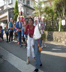 | 10月19日(日曜日) 天高く馬肥ゆる秋。お米の美味しいこの季節、奉納を祝って町内はみこしが練り歩く。 一週間前から町内ではお祭りの準備が始まる。家の周りに張り巡らす縄と白い紙垂とい物が配られ、縄に吊るしていく。 神様をお迎えする意味なのか?と思うが・・・この白い紙の意味が悲しいかなよくわからない。 スーちゃんは近所の家に吊るされたこの白い紙を見て、「誰か亡くなったの?」と悲しそうな顔で私に質問したのだ、 「どうして?」と逆に聞くと、スリランカでは誰か亡くなると白い服を着たり、白いものを喪に使うのだと教えてくれる。 町内がざわめき、おみこしが我家の近くにやって来た。お花代を用意していなかったので、 あわてて封筒にお花代を入れて玄関に飛び出していく。 俄か神主さんが御幣を持って私とスーちゃんが頭を下げると頭上で一振り、二振りしてお払いをしてくださった。 スーちゃんも始めての経験なので神妙な面持ちで頭を下げていた。 ![]() 今日は近くの神社でも神楽があったり、夜店、屋台などあると聞いた。午後からスーちゃんを連れて行くことにした。 神社の下のスーパーに車を置いて、長い石段を登ると八幡神社がある。 この神社でおみこしのお払いして頂き、ここから出発する。 息子達がまだ小学校の頃は、子供達も沢山居たので、賑やかにみこしを担ぐ「わっしょい!わっしょい!」という 掛け声が響いていたものだったが最近ではすっかり子供達が少なくなった。 今朝廻ってきたみこしを見ても大人のほうが多い始末で、寂しい事この上ない。 神社に行くと、直ちゃんいっちゃんのお母さん(玲子さん)が、子ども会の役員なのではっぴを着てうろうろしていた。 聞くと、3時から”餅撒き”があるとのこと。まだ3時までには一時間もあったが、せっかくなのですーちゃんの為に "餅撒き”を経験させてやろうと玲子さんと立ち話をしながら待った。 ![]() 3時近くなると、神社の方が餅撒きについての説明が始まった。 撒かれた餅の袋の中に番号が書いてあり、くじがあたると何か景品がもらえるらしい。がんばってお餅を拾おうと張り切る。 さて3時の時報とともに、神主さんたちが箱に入ったお持ちを手に持ち方々へ投げ始められた。 神社の境内にはいつの間にか黒山の人だかり。 老若男女、どこから沸いてきたんだろう!!というほどの人人!! お餅が撒かれると、わ〜!!わ〜!!と両腕をいっぱい拡げてお餅の一個でも取ろうとがんばる。 境内は土煙があがっている。10分程でお餅争奪戦は終わった。 私もがんばったが、とろい私は落ちた餅さえ拾えなかった。わずか手には一袋だけ・・・。 スーちゃんはというと、3個か4個手に握っていた。 次に神主さんが一等、2等、3等、4等の当たり番号を読み上げる。 一等は1本で電気毛布とか、結構良い景品だった。 スーちゃんが拾ったお餅は4等と5等があたり、部屋を掃除する道具と軍手とタオルのセットをもらった。 結構楽しませてもらったので、また長い石段を降りて車に戻り、玲子さん共々家に帰る。 スーちゃんも始めての経験に楽しい時間を過ごしてようで喜んでいた。 ![]() 夕方は久しぶりに河原さんのお宅を訪問する予定だ。河原家は先日引越しをされたので、今日は初めてその御家に伺う事に。 スーちゃんも赤ちゃん(幸多君)に会えるので、大喜びである。 ![]() |