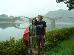 | 7月20日(金曜日) 朝からしょぼしょぼ雨が降っている。今日は岩国の錦帯橋を見に行く事にした。雨の錦帯橋を見に行く事にした。 雨の錦帯橋も風情がある。河には船が出ていて釣りをしていた。雨に曇る錦帯橋と船と人と釣竿はなかなか良い風情だ。 コンチアルベルトのカメラで写真を撮ってやると、確認の為見ている。「タケシの写真は素晴らしい!」と褒めてくれた。 おお!!私の感性が分かってくれたか!!私は写真を撮る時いつも構図は考えるようにしている。 スナップ写真を撮るときもカメラをずらして、一番いい構図を決めてシャッターを押すのである。 「日本庭園は石組みを写真の中央なり、右隅なり左隅なりに配置して写真で切り取ればそれなりに 絵になるように作ってあるので、カメラをずらして一番美しい構図で写真を撮るように!とあるベルトにサジェッション。 分かってくれたかな?吉川公園を歩く。白へび館を見たいと言うので見に行く。 スペインの観光案内にも出ているらしい。私たちは初めて入館した。白い青大将達が長々とくつろいでいた。 ![]() ![]() 広島市内に帰って何か買いたいものがあるか?と聞いたらお土産に南部鉄瓶と地下足袋が買いたいとコンチが言った。 私が見込んだ外国人だけのことはある。日本人形や漢字の書いてあるT−シャツやハチマキなどでないとは・・・・。 地下足袋は人力車を引いている車夫が履いているのを見たようだ。地下足袋なら作業服など売っている店に行って見よう。 地下足袋は3種類売られていた。お祭り用の白足袋、建築現場で履く安全靴タイプの地下足袋、植木職人が使う地下足袋。 コンチは散歩する時に使いたいそうだ。面白い事を考える女性だ。 あれこれ迷っていたが、植木職人用の地下足袋に決定。1600円也。 南部鉄瓶はソレイユで見たが、小さい物でも4000円はするので、おみやげ物代としては高いらしく買うのを諦めた。 家に帰って我が家に足の指が分かれた靴下があったのでプレゼント。 足の指が分かれた靴下を履いて見せ、足の指を動かすと、コンチとアルベルトにとって生まれて初めて見る 靴下だったのか大うけで二人とも笑い転げ廻っていた。 日本でありふれた物でも外国人にとってはめずらしく、大いに受ける(クール)物があるのだろう。 昨年秋に来たアルバロ父娘に寒かったのでホッカイロを貼ってやったら大いに喜んで 大量に買い込んだおみやげがホッカイロであった。一袋が10円位なので、手軽なお土産である。 スペインにはホッカイロのような暖房グッズはないようで、10円で一日暖かくしてくれるものに大感激であった。 海外に行くときのお土産にホッカイロは面白いかも・・・・。 ![]() |