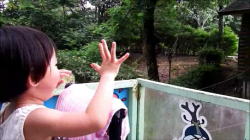 | 8月14日(月)広島市森林公園へ 両親は朝早くゴルフに出かけた。 じーじとばーばだけで二人の孫のお守りだ。 朝7時、孫二人はスヤスヤと眠っている。 9ヶ月の樹が目を覚ましたとき母親が居ない事に気付き泣くかどうか・・ 9時前に樹は目を覚ましたようで、2階でちょっと泣き声がする。 ばーば2階に行き抱いて降りてきたら泣き止んでいた。 樹は母親を探す風もなく床で一人遊びしている。 ひなこは昨年4月に我が家で一人で過ごした経験があるので 両親の姿が見えなくても平気な様だ。 ひなこはばーばの朝食のお手伝い。 樹はマッサージチェアーに座っている私のお腹の上でスヤスヤ。 目が覚めてグズルのでばーばが抱くと泣き止む。 ひなこもお姉ちゃん振りを発揮して抱こうとするのだが 自分の半分もある樹はとても無理。 樹の朝食に重湯と潰した納豆を食べさせようとしたがあまり食べず。 桃を小さく切って与えるとバクバク食べてくれた。 まだ母乳を飲んでいる樹は母親を探して泣き止まないのかと 心配したが抱けば泣き止んでくれる。 昨年と同様、広島市森林公園へ行き「森の縁日」に行く。 出店が出ており浮き玉の金魚すくいやロープ潜りや缶詰釣などのゲームを楽しむ。 缶詰釣は2度やり赤色と青色の甘酒の缶をゲット。 「お父さんとお母さんの!」だそうだ。 ![]() ジャブジャブ川のコーナーでは、射的で店番のおじさんに手伝ってもらい 一番に命中。 10Cmのブリキの自動車かキラキラした指輪を示され指輪を選ぶ。 やっぱり女の子だわい! じゃぶじゃぶかわのあひるレースでは誰も選ばないピンクのリボンの アヒル(ナリタブンブン)を選択。 大番狂わせで「ナリタブンブン」が一着! 大穴賞で、スイッチを入れると光るアヒルをゲット。 大人は大穴だと騒いでいるがひなこには分からないようだ。 光るアヒルはえらく気に入ったようだ。 ![]() ![]() ![]() 樹はばーばの抱っこ紐の中でずっと眠っている。 暑いので上の売店に行きアイスを食べて涼む。 樹は持参のお茶をゴクゴク。 さあ帰ろうかと帰途に着く。 ひなこは下り坂を走った。 スピードが付き過ぎ、足がもつれて転んだ。 転んだところがアスファルトでなく木の溝蓋の上だったので 手足を擦りむかなくて良かったのだが、鼻血がボタボタと・・・ 血を見てひなこは大泣きに泣き出した。 ばーばはタオルで鼻血を拭いてやるが助け起こさない。 じーじもばーばもここはグッと我慢で助け起こさない。 いつもは優しいじーじもばーばも助けてくれないで頑張れと言う。 ![]() いつまでも泣き止まないので、そのままに帰るそぶりをで歩き始める。 5mも進まないうちに泣きながら追いかけて来た。 じーじはそっと手を差し伸べたが振り払われた。 ばーばのところに行き、手を繋いでもらい泣き止んだ。 すぐに機嫌を直しばーばとお話を始める。 駐車場に戻るとモノレールが見える。 未だ一度も乗った事がないのでチケットを買う。 案内板をよく見ると、3歳未満は乗車不可だったのでひなことじーじと 二人でモノレール「ブンブン丸」に乗り込む。 結構急斜面のラックギヤーを噛み込みながら8名乗りの 「ブンブン丸」は確実に登っていく。 頂上の櫓の天辺に登る。 下にいるばーばに「やっほう」と大きな声を出してごらんと言うのだが無言。 「ブンブン丸」は下がる方が怖かった。 ![]() 両親は15時過ぎにゴルフから帰ってきた。 樹は猛烈な勢いでお母さんのおっぱいをゴクゴク。 夕方ひなこは「KATAMINO]という木製の知育パズルで遊ぶ。 3歳から99歳まで遊べる木製パズルなのだが、4段階位だと 大人もなかなか難しい。 形状認識の乏しいばーばは苦戦をしている。 ひなこはばーばに教えている。 樹が並べている木製片を触りに行きバラバラにする。 しかしひなこは「ダメ!」とは言うが押したり叩いたりしないのは 流石お姉ちゃんだわい。 夜は樹と同じ位のスイカで二人は遊ぶ。 ひなこは体操で習ったY字バランスを披露してくれた。 ![]() ![]() ![]() |
