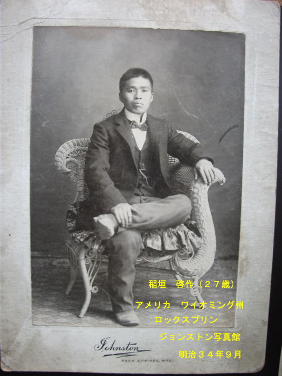 | 8月 お盆1枚のセピア色の写真 古いアルバムを見ていたら祖父のハイカラーの写真が出てきた。 アメリカワイオミング州ロックスプリングスのジョンストン写真館の文字が見える。 写真の裏には明治34年(1901年)9月とある。 稲垣啓作爺さん27歳の写真である。 親父から聞いた事がある話なのだが・・ 爺さんたちは3人(兄弟?従兄弟?)でアメリカに渡ったようだ 爺さんは結婚していて長男がいた。 親父は次男で長男と歳が離れているので帰国してから生まれた様だ。 明治の男たちはABCも知らないのにアメリカ横断鉄道の鉄道工事に 何か月も掛けて稼ぎに行ったものだと驚愕する。 もっとも最初のアメリカ横断鉄道は1869年ではあるが・・・ ワイオミング州ロックスプリングはロッキー山脈を越えた所にある。 恐らく爺さんたちはアメリカでの日当で日本では一か月過ごせる賃金と思ったのだろう。 アメリカでの生活費でほとんど消える金額とは気が付かなかったのだろう。 どんな思いでこの一枚の記念写真を撮ったのだろうと想像すると心が痛む。 金がたまることがないと思いサンフランシスコに辿り着く。 このままでは故郷に錦が飾れないと、金を増やそうとばくちに手を出す。 ケツの毛まで抜かれスッカラカンとなりサンフランシスコで皿洗いして 帰りの船賃を稼ぎ夢破れて日本に帰って来た。 爺さんがちょっと偉かったのはアメリカで見たであろう製材所の丸鋸を 買って水車を使って製材を行ったと親父は言っていた。 水車小屋は神の倉登山口の近くの水路だったようだ。 お盆なので少しご先祖様に思いを致した次第です。 ![]() ![]() |