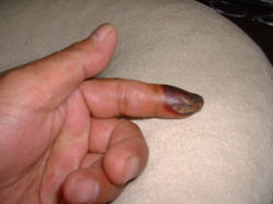 | 8月27日(木曜日) やくざの仲間入りに!?(指が無くなる!) けさ包丁で切った指先のテープ(医療用の粘着テープ)を切り離してみた。 指の腹が真っ黒で硬く板のようになっていた。 指先は細くなっている。真っ黒なので壊疽だと直感! 同級生のかかりつけ医の木下医院に電話で相談。 「どこの医者に行こうか・・・・」と相談したら「すぐ来てみろ」と言う。 私の指を見るなり絶句。 どうも重大な事になっているようだ。 彼の奥さんが近くで皮膚科を開業しているので、見てもらってどこか紹介してもらえという。 木下皮膚科でも絶句された。ますます不安増大。 私の指を携帯の写メールで送ってもらい、なんとかなるか相談してもらった。 どうも電話の様子だと指の切断しかなさそうだ・・・・ 指を切って3日間はズキズキ痛んだが、それ以降は痛くも痒くもなかったので 治って行っているのだと思っていた。 テープで血流を止めてしまい組織は死んで行き壊疽を起こしていたのだ。 壊疽を起こした所はミイラ化してカチカチになっていたのだ。 紹介された岡山形成外科にいく。以前背中と首筋の手術をしてもらった所だ。 前回は皮膚の切り取りぐらいであったのだが、今回はそうはいかない! 13時過ぎにやっと見てもらえた。(患者さんがすごく多い) 岡山先生も絶句。 お医者さん達の絶句は「何故こうなるまで放っておいたのだ!ばかやろう!!」ということのようだ。 指先の切り傷くらいでこんな事になろうとは自分の愚かさが情けない。 指を縛りっぱなしにしていると血が通わなくて壊死するというのは知っていたのに・・・ しかし、こんなにも簡単になるなんて・・・・悔やんでも後の祭りだ! 岡山先生の見立ては「携帯の写真でははっきり見えなかったが、爪は生きているようなので 壊死している部分を切除して手のひらと指をくっつける手術をして皮膚が再生するのをを待ちましょう」 「但し骨まで壊死していたら指を切断するしかないです」といわれてしまった。 「パラグライダーのブレークコードが操作できるように指先は残してください!」とお願いする。 骨まで腐ってないことを祈るのみだ。 8月29日が手術日と決まった。 |