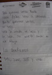 | ホアンの娘達から・・・(外国の孫たちから) コロンビアから封筒が届いた。ホアン一家からの手紙が入っていた。 ホアンの娘ソフィーナ(姉6歳)とバレンティーナ(妹3歳)からは絵を送ってくれた。 娘達が絵を描ける年頃になったので、ホアンの奥さんのタチアナが書かせたのだろう。 日本のおじいちゃんとおばあちゃんに送るのだと言って聞かせたのかな?と 想像すると、タチアナやホアンの気持ちが嬉しい。 手紙には「すぐにでも会いたい。来てください!」と書いてある。 孫娘達は可愛い盛りなので訪ねて行ってみたい気がする。 ホアンの仕事(自営)は軌道に乗ったのかな? ![]() ![]() 10年経っているのにホアンはなんとか日本語を覚えているようだ。 昨年12月、最近のホアン一家のかわいい写真を送ってくれた。 ../../inagakiita/10_11_gatu.htm#10_11_26 そのうちタイやスリランカにも孫たちが生まれるのだろうなあ。 頑張って健康で長生きして訪ねてみたいものだ。 ドイツにいるアンヘルス(広大留学生だった)からは子どもが出来たので 見に来て!と盛んにメールをよこしてくる。 |