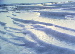 | 2月10日(金曜日) 世界遺産パムッカレ観光 パムッカレ観光 30代のころテレビで純白の石灰棚と真っ青空とのコントラストが目に焼きついていた。 今は観光開発が進みすぎて温泉の湧出量が激減し、ローテーションして 温泉を満遍なく流しているそうだ。 昔は石灰棚の何処でも歩けたが、現在は一部のみ観光客に開放している。 靴を脱いでぬるい温泉の石灰棚を歩いてみた。 空は曇っていて、気温はマイナス1℃。 目に焼き付いている憧れの石灰棚とは程遠かったがスケールはでかかった。 ![]() 石灰棚動画 http://www.youtube.com/watch?v=nApQGHO157U 石灰棚の上部はヒエラポリス遺跡である。 地震によって昔の埋まってしまったであろう遺跡は涼として寂しい。 時間がないのでちらりと遠くから見ただけであった。 パムッカレ観光後はひたすらトルコ中央部を410kM走り続け古都コンヤに急ぐ。 夕方イスラム教神秘主義メヴラーナ教の総本山メヴラーナ博物館見学。 コンヤの街外れのデラックスホテル「リクソス」宿泊。 最近出来たホテルのようだ。 ガラスが床から立ち上がっていてアメリカの近代ビルのようだ。 使ってある設備や備品はそれなりに高級品のようだが施工が悪すぎる。 ペンキがはみ出て塗ってあるし、酷い所は壁の真ん中にも誤って塗ってしまったところもある。 バスタブと壁の取り合いが悪く、素人が誤魔化した仕上げだ。 窓や化粧枠と壁の隙間が上下で10mmも違う。 出隅のコーナー役物が隙間だらけ。 余程ゼネコンが値切ったのか? こんな状態で検査を通すゼネコンの建物はそのうち崩壊するだろう。 ホテルの近くにスーパーがあるというので15分ばかり歩いていく。 私は旅行した国のスーパーに行くのが大好きなのだ。 土地の人々がどんな物を食べているのか? どんな生活をしているのか? そして買い物するにも言葉は要らず、値段が付いているので安心だ。 殻付きのヘーゼルナッツとアーモンドが計り売りをしていた。 嫁さんがケーキに使いたいと言うので1Kgづつ買った。 Kg当たり17リラ(760円)位だった。 |