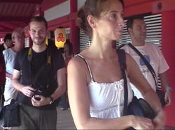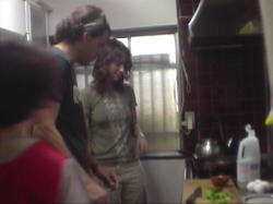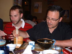 | 7月18日(水曜日) 昨夜アルベルトから電話が入ってきた。 「今別府に居る。明日広島に行くのだが本当に訪ねても良いか?」と言ってきた。 12時に広島駅というので、改札口で待っていると、嫁さん急にトイレに行って来ると言う。 コンチとアルベルトが間違って在来線の方に人込みと一緒に流れて行ったら分からなくなるのに・・・。 客も少なく早めに来たし、背が高いのですぐに分かった。 私はビデオを構えていたので彼らがすぐに見つけてくれるか?もし在来線に歩いて行けば、大声出さんといけんかな? と思っていたが、彼もすぐに私を見つけてくれた。 嫁さんはまだトイレから帰って来ない。「ヤーヤーよく来たね!」と日本語で言って握手。 「×○※×○※アイコ×○※」と言うので「トイレ!」と指差す。 ニコニコしている事3分間くらいでようやく嫁さん帰って来て、お互いにハグしている。 昼飯はまだだと言うので「お好み焼き」のお店に食べに行く。 矢賀新町にあるおばちゃん二人でやっている極普通のお店である。 外国人を連れて2〜3回行ったので、私達夫婦の事をちょっと覚えていてくれた。 「豚肉と卵は大丈夫?」と聞いて、そば入りお好み焼きを注文。 私が極普通のお好み焼き屋さんに連れて行くかというと、鉄板で食べさせてくれるからだ。 私が食べるのを見せながら。これが正式な食べ方だ!!と外国人にヘラを使わせて フーフー言わせながら食べさせるのが面白い。 彼らが一番驚くのは、目の前で料理してくれる事らしい。面白がって何枚も写真を撮っている。 コンチは熱いのが苦手らしく、だいぶ遅くなったがヘラで完食した。 スペインに帰ってお好み焼きを焼いてくれればと思い、製作過程はすべてビデオに撮った。広島を代表する郷土料理だ!! と言ったので、スペインでチャレンジしてくれると嬉しいが・・・・。 当然お好み焼きソースはお土産に持って帰らせる。 ![]() 昼飯が終わったので、半日の時間ならば原爆資料館だ。 広島に住んでいると分からないが、世界で一番有名な都市は「ヒロシマ」だろうと思う。 各国の首都は興味がないと答えられない。 アメリカはニューヨーク or ワシントン。 スペインはバルセロナorマドリッド。ドイツはベルリンorボン。 超有名国でも私にとってはちょっと考えてしまう。ましてやアフリカ諸国だと一国も分からない。 人類に始めて原爆を使用したと言う意味で、世界中の子供達は「ヒロシマ」を教えられている。 実際コロンビアやコスタリカやスペインやタイを旅行して、現地の人たちと話なしをする機会があって 「広島から来ました」というと全ての人達が「ヒロシマ」を知っていてくれた。 広島人として、外国人が我が家を訪ねてくれて時は、必ず原爆資料館へは連れて行く事にしている。 入館料は50円。英語やスペイン語などの外国語案内のテープは300円である。今回は私も一緒に入館した。 原爆の威力や、被害状況(焼け野原)もすごいと思うが、焼け爛れた三輪車や、弁当箱や服にはいつも泣かされる。 何町何丁目何番地の誰々さんの物ですという説明文である。 物だけの展示(瓦やガラス瓶)だと、さほどショックを受けないが、持ち主が確定されていると、 この服を着ていた子供が焼け死んだと思うと、やはり泣けてしまう。 この資料館を見た外国人達はどの様に感じてくれるのか・・・。 私は我が家の客人達にあーだ、こーだと説教は一切しない事にしている。 彼らが感じた通りを本国で周りの人々に話をしてくれれば良いと思っている。 原爆資料館の前半部は戦前の広島の町に賑わい紹介している。 そして軍都、軍港、大本営が置かれていた事も説明している。 広島が被害者面馬鹿利するなと言う批判に答える為だろう。 唯、アメリカが主張する「原爆を投下したお陰で、戦争が早く終わって日本人やアメリカ人の100万人の命が救われた」 とする考え方には、ヒロシマ人として、何とか理論武装しておきたいものだ。 久間防衛元大臣の失言「原爆投下は仕方なかった」と言う類の論理に対してもである。 石原東京都知事がテレビで面白い事を言っていた。 「自分はアメリカの飛行機に機銃掃射を受けた。町の中で一般市民を追いかけまわして アメリカ軍パイロットは面白がっていた。それは卑怯者のすることだ」とアメリカ人に自分の経験として話をすると 「それは申し訳なかった」と愛国主義者のアメリカ人も謝るそうだ。 原爆の何百倍もの水爆も作ってしまい、全人類を何度も殺せる量を作ってしまった、核保有国の国民に 是非この資料館を見てもらいたいものだ。 一発の水爆でひとつの都市を蒸発させる威力を持つ爆弾を使用してしまっては勝利者は何処にも 存在し得ないと思うのだが・・・。 コンチとアルベルトは学校の先生なのだ。テープ案内に従って一時間半程館内を巡ってくれた。 私達夫婦は長椅子で休んでいたが、お構い無しで熱心に見てくれた。 スペインに帰って子供達に「ヒロシマ」の事を伝えてくれ