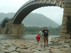 | 7月20日(金曜日) 朝からしょぼしょぼ雨が降っている。今日は岩国の錦帯橋を見に行く事にした。雨の錦帯橋を見に行く事にした。 雨の錦帯橋も風情がある。河には船が出ていて釣りをしていた。雨に曇る錦帯橋と船と人と釣竿はなかなか良い風情だ。 コンチアルベルトのカメラで写真を撮ってやると、確認の為見ている。「タケシの写真は素晴らしい!」と褒めてくれた。 おお!!私の感性が分かってくれたか!!私は写真を撮る時いつも構図は考えるようにしている。 スナップ写真を撮るときもカメラをずらして、一番いい構図を決めてシャッターを押すのである。 「日本庭園は石組みを写真の中央なり、右隅なり左隅なりに配置して写真で切り取ればそれなりに 絵になるように作ってあるので、カメラをずらして一番美しい構図で写真を撮るように!とあるベルトにサジェッション。 分かってくれたかな?吉川公園を歩く。白へび館を見たいと言うので見に行く。 スペインの観光案内にも出ているらしい。私たちは初めて入館した。白い青大将達が長々とくつろいでいた。 ![]() ![]() 広島市内に帰って何か買いたいものがあるか?と聞いたらお土産に南部鉄瓶と地下足袋が買いたいとコンチが言った。 私が見込んだ外国人だけのことはある。日本人形や漢字の書いてあるT−シャツやハチマキなどでないとは・・・・。 地下足袋は人力車を引いている車夫が履いているのを見たようだ。地下足袋なら作業服など売っている店に行って見よう。 地下足袋は3種類売られていた。お祭り用の白足袋、建築現場で履く安全靴タイプの地下足袋、植木職人が使う地下足袋。 コンチは散歩する時に使いたいそうだ。面白い事を考える女性だ。 あれこれ迷っていたが、植木職人用の地下足袋に決定。1600円也。 南部鉄瓶はソレイユで見たが、小さい物でも4000円はするので、おみやげ物代としては高いらしく買うのを諦めた。 家に帰って我が家に足の指が分かれた靴下があったのでプレゼント。 足の指が分かれた靴下を履いて見せ、足の指を動かすと、コンチとアルベルトにとって生まれて初めて見る 靴下だったのか大うけで二人とも笑い転げ廻っていた。 日本でありふれた物でも外国人にとってはめずらしく、大いに受ける(クール)物があるのだろう。 昨年秋に来たアルバロ父娘に寒かったのでホッカイロを貼ってやったら大いに喜んで 大量に買い込んだおみやげがホッカイロであった。一袋が10円位なので、手軽なお土産である。 スペインにはホッカイロのような暖房グッズはないようで、10円で一日暖かくしてくれるものに大感激であった。 海外に行くときのお土産にホッカイロは面白いかも・・・・。 ![]() |