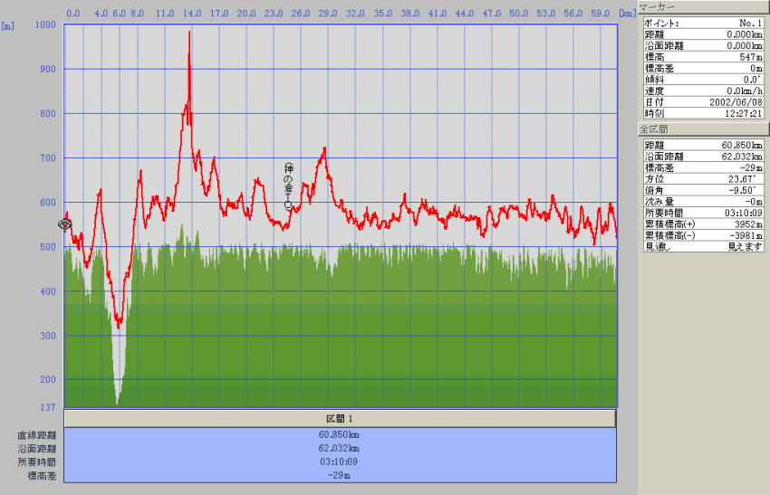 | 6月16日(日曜日) 朝9:30嫁さんの実家を出る。快晴で今日も暑くなりそうだ。 到着すると、飛び亀、プレジャーの練習生は既に朝練で神の倉へ。 児島さん達は荒谷山へ上がっていた。稲垣号で井口夫妻、小脇さん、河原さん、近藤おばちゃん 等で荒谷山へ上がる。 今日の荒谷山は北風メインであるがフォローになったり、正面や南のブローが入って来てまるで一定しない。 12時頃、少し南のフォローが勝ってきた頃、児島さんがテイクオフし、井原市駅裏で上げ始める。 小脇さんもテイクオフし、上げ始めた。近藤のおばちゃん、南の小山経由で行くものだから 山チンすれすれに下がりながら、小脇さんが上げたところにようやく到着し上げ始める。 私は一直線に向かったつもりだが、リフトに力強さが無い。仕方なくお寺の上で5分ばかり 粘るもあえなくランディング。 近藤のおばちゃんもランディング。 その後出たマキちゃん達6機ばかりは+1000mで廻している。 あ〜ぁ、ぶっ飛びぐせがついてしまったか!! 休んでいると、松代さん到着。近藤のおばちゃんとアレックスの4名でとりあえず荒谷山テイクオフに 上がってみると、井口さん、神谷さん、キムリン、徳ちゃんがウエイティングしている。 ほとんどフォローになり、テイクオフするチャンスに恵まれなかったらしい。 神の倉に移動しようという事になり、キャノピーたたむ。すると南側からブローが入り始める。 もう一度チャレンジとなり井口さんテイクオフし、南小山で上げ始める。 神谷さんとキムリン、テイクオフし上げ始める。アレックスも上げている。近藤のおばちゃん、徳ちゃんも テイクオフし、上げ始める。私もテイクオフし南の小山を攻めるも上げきれない。テイクオフ上を攻め ボールの奥にも入ってみるが、フォローになっていて上げきれない。 とうとうレベルまで下がって来たのでトップランして仕切りなおしとする。 松代さんテイクオフし、南小山で上げ始めた。もう一度テイクオフ。 テイクオフ前面でサーマル引っかけ+100mは上げるも頭打ち。 20分ばかり荒谷山山頂で粘る。皆さんは+1200mは上げている模様。 ようやく+5mのサーマルヒット。逃してはならじ!と必死にしがみつく。 一気に+1100m(地上1500m)まで上がる。結構寒くなってきた。ジャンパーは持って来ているのだが、 1本目がぶっ飛びだったので長袖シャツ一枚でテイクオフした。 何処へ行っても沈下しない状態となる。 もう一度サーマルヒット+1300mまで上がり、あっちこっちに動き廻ってみる。 井原市駅上空にマキちゃんが試乗機のシグマ5に乗って同じレベルにいる。 近づいて行くと−50mで一緒になる。サーマルヒットのチャンスがなく、高度が追いつかない。 シンク帯になったので荒谷山へもどる。途中で+5mのサーマルヒット。 もういい加減に寒くて頭が痛いのだが、ピッツピッツと上昇すると、どうしてもハイバンクで 廻してしまうのである。フライヤーの悲しい性である。 終に雲底+1550m(地上1950m)に付ける。ついに寒くて胴ぶるいしだした。 このまま廻し続ければ雲中になるのだがろうが、もう耐えられない。一目散で雲の端へ逃げる。 日が射して来て、体一杯の日差しを浴びて、人心地つく。 寝っころがって手足を広げて日光浴する姿はまるで変温動物のイグアナである。 もう頭痛がして来たので、シンク帯をそのままに高度が下がるに任せる。 すでに高く飛んでいた人たちも居なくなった様だし、2時間半も飛んだので荒谷山へトップランし 自分の車を回収。 本日のフライトログ 1D,2D,3Dの絵を載せました。 カシミールのお陰で素晴らしいフライトログが残せます。 ![]() 4時頃ランディング場に着くと、嫁さん田舎から帰る途中早めに寄ったと言う。 沖縄の練習が出来るのも、今日しかないし、まだ何本か飛べるので、無理矢理神の倉へ 連れて上がり飛ばせる。 強めの中テイクオフし、一瞬トップアウトは果たし、リッジを取っていた。 練習生がどんどんテイクオフするので、早めに離れる様指示し、車を降ろす。 2本目もすぐに神の倉にとって返し、テイクオフさせる。 沖縄で何とかリッジは取れると思う。トップラン出来るかどうかは未定だが、タッチ&ゴー を10回ばかりやってみれば、一回くらいは成功するだろう。沖縄では梅雨明けと無風でない事を 祈りつつ・・・・。 |