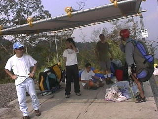 | 8月23日(土曜日) 晴れの予報だったのに、何んだか薄雲が張っている。 神の倉ランディング場に到着すると、結構車が多い。 お盆休みに来れなかった人が、繰り出して来たらしい。 荒谷山へ11:30上がる。南又は正面からも入って来る。 今日は空気がいやに水っぽい。安駄山はかすんで見えない。雲低も1500mくらいか? しかし暑い!例年ならばお盆が明ければ秋風が吹く頃なのに。 1本目は3人でぶっ飛んでしまった。 大急ぎで荒谷山へ。既に3機ばかり上がっている。 正面沖で強風なのだが流されつつ上がって行く。 私も正面右でサーマルヒット。何とかトップアウトし荒谷山山頂に付ける。 しかし今日のサーマルは、強いのだけれども細く強風で流される。 そして、よくテンション抜けて気持ち悪い。 廻しては流され、テイクオフ上空に戻り・・・・・を何度も繰り返す。 1時間ばかり飛んで+300mしか上がらず、飽きてトップラン決意。 両翼端折って駐車場上空5mをスルー。 少し強めだったので、前進せずバリケードをギリギリ超えてソフトトップラン。 その後、小脇さんを残して全員ランディングしてしまった。 小脇さんは一人2時間ばかり飛んでいた。 荒谷山テイクオフのテントで、小一時間眠ってしまった。 目を覚ましてみると、未だ4〜5mの風は吹いている。 リッジがとれるかとテイクオフ。出てすぐ、右ボール奥に突っ込む。 林道と同じレベルで斜面にへばり付く。 コネコネとリッジで+20m上がるもそれ以上上がる気配がない。 とりあえずトップランしようと高度処理したのだが、少し高いのでもう一度ボール奥に振ったら、 高度を失ってしまった。林道上を偏流で行き、駐車場トイレ前にトップラン。 しかし、バリケードより外側なのでアウトラン???。 夕方小脇さんに聞いたら、アウトランだがトイレ掃除ペナルティの範囲外であった。 車を降ろそうと思っていたのだが、木原さんが降ろしてくれると言うので、 お言葉に甘えて、本日最後のフライトをぶっ飛びで飾る、パラ中毒末期患者の不良おやじであった。 ![]() ![]() ![]() |