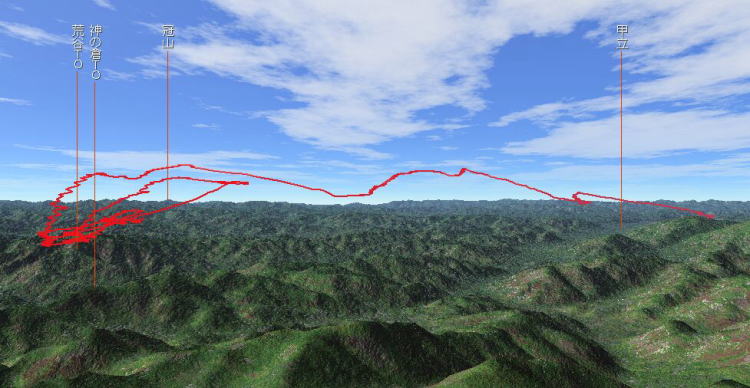 | 石田さんのクロカンフライトログ 12月14日 最近、仕事や雑用が多くて空飛びたい病の私が2週間も飛んでいません。 もはや禁断症状が・・・・・・・・・(^^; 日曜日、新しく買った液晶テレビのアンテナを立てていたら結局神の倉へ着いたのは お昼になってしまった。 さすがに車が多く、狭いスペースへ無理やり入れようとしていたら土手の路肩にずり こんで二進も三進も行かなくなった。 4駆に入れてもズルズルと滑るばかりで、結局もう1台の車に引っ張ってもらい 30分以上立ち往生してしまった。 児島さんに「出遅れてしまったネ」と言われ見上げると、2〜3機がトップアウトしている(^^; 荒谷山テイクオフへ着くと、すでに15〜6機以上の機体が+200mあたりでガーグルを組んでいる。 思ったとおりコンディションは良さそうだ。今日は試乗機のカイエンを借りているのだが、 こんな良いコンディションのときは自分の機体で飛びたいなどと思ったりもしたが、 そんなことを言っていたらいつまでたっても試乗機には乗れない(^^; マキちゃんに続いてテイクオフ、なんともスムーズでイージー(^^v 出てすぐ右側のリフトを感じ回してみたが思ったほどには無く結局いつもの南の小山へ移動。 サーマルに当たってちょっとピッチング、何とか+300m位まで上がったが息切れし始め、 ここでマキちゃんたちと別れ、上昇率の良さそうな機体を探す。 しかし+500m位がマックスで30〜40分位するとどんどんたれ始め、 荒谷テイクオフの裏山まで下がってしまう。 このままだとトップラン狙いかなと思っていたら、案の定不良おやじさんが綺麗にトップラン。 私も北から狙っていったがちょっと高い、ストールポイントの分からない試乗機で引き込むのは 気持ちが悪いのでスルーしたが最後は一気に下がってしまった。 しかたなく南小山へ向かっていたら又しても右側で上昇を感じ回してみたが、又しても勘違いか??? 結局いつものポイントへ、しかも又してもマキちゃんが私の上にいる。 そしてカンカンも何だか振り出しに戻ってようだが、粘っていると今度はかなり良いサーマルにヒットした(^^v +800mあたりでリフトが弱くなり、少しずつセンタリングの輪が広がり3人ともリフトを探し始めた。 +800mをオーバーしたらXCに出ようと決めていたので、もう少し上がればXCに出 ようとあたりを探したが、もう何処へ行っても上がらない。 +880mでGPSのスピードが1番出ている方向へ機体を向ける。 久々のCXだ♪ 吉田町上空アンテナの山で再びサーマルヒット(^^v センタリングしていると向原町を過ぎたあたりの可也低いところでマキちゃんがもがいている。 彼女は、終わったなとさらにセンタリング。まだ荒谷も神の倉も見えている。 ここで荒谷テイクオフから+500m位まで上がり再び移動、前回上がった吉田町を過ぎた 高圧線手前の山で今日1番のサーマルヒット(^^v ここは、前回も地上+100mあたりから一気に+1000m位上がったところである。 回していると何と終わったと思っていたマキちゃんが上げなおしていた。 ヒエ〜さすが♪荒谷テイクオフから+1100mオーバーし上がらなくなり荒巻方面を目指す。 しかし、前方は一面黒い雲の下で三次あたりまで曇っていて日の射しているところがない(T T) 恨めしいその雲の端のほうを見ると、ちょうど荒巻上空あたりに何と児島さんがいる。 私より+100m位高いところか?まるで私を待っているようにゆっくり回している。 どうやら一面を覆っている黒い雲の吸い上げのようだ。おだやかに上昇しながら荒巻 上空に差し掛かると北の練習バーンで黄色い機体が練習をしているのが見えた。 私たちに気ずいたのかテイクオフでずっと止まっていた。 児島さんは志和地方面へ走り始め、私も付いて行った。 雲の吸い上げもなくなり滑空のみとなり、ここではっきりコンペ機とDHV2の機体性能を感じてしまった。 志和地駅上空で+150m位はあったがとても三次までは行けそうに無いのでJR志和地駅と いつかは行きたい三次の町の写真を4枚井ほど撮り、駅隣の大きな田んぼへ降ろすことにした。 南風を想定していたが、運良く北風を示す煙が見えたので、濡れている部分を避け予想どうりの ランディングが出来さらにグラハンで道まで持っていくことが出来た(^^v 久しぶりに満足のフライトが出来、にやにやしながら機体をたたんでいると、私よりは+150m以上 高かった児島さんが私と同じ田んぼへ降ろそうとしている。 しかも最初からうまく道へアプローチ。さすがJリーガー♪ ところで、上空で電話が5回位鳴っていた。かみさんと健ちゃんは音で分かったのだが、 あと1つが分からなく着信履歴を見てみると小脇さんからだった。 迎えに来るとのこと、ありがとうございます〜。 迎えに来てくれた車にはマキちゃんも乗っていた。 何処まで行ったと聞いたら、マンハッタン裏の道に降ろしたとのこと。さすが♪ それにしても、いつかは行きたい三次の町がもうそこまで見えていた。 CXを始めて、私の1つの目標であるが、パ