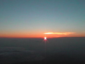 | 8月27日(土曜日) コスタリカからエリックが22日にひょっこり会社に顔を出した。 レイナと越君が連れて来てくれたのだ。 2年前にコロンビアのホアンに会いに行く時、3日程コスタリカのエリックの所に泊まった。 4年前に賀茂北高校に留学している時、2度ばかり我が家に泊まりに来てくれたのである。 安芸府中高校にもホアンを通じて友人がいくらか出来たのである。 エリックは大学に行きながら、コンチネンタル航空にアルバイトに行っている。 格安チケット(コスタリカ往復 2万7千円)が手に入ったので10日の休みを取って日本に来たのである。 8月20日に福富のホストファミリーの井上さんのところに泊まって、賀茂北の皆さんとも会ったようである。 我が家に2泊してなつかしんだ。詳しくは嫁さんのHPで・・・・。 8月はあまり飛んでないような気がする。今日はお天気の予報なので、9時には家をでる。 皆さんも早めに来ていた。高石さん、増山さん、河原さん、時安さんたちと早速神の倉に上がる。 午前中の神の倉はいまいちで、ぶっ飛んでしまった。増山さんの車で2本目神の倉に上がる。 今度はしっかり観察して、テイクオフしようと、思うのだが、中村さんがテイクオフしていて、 右尾根の延長線上であげている。一気に上がらないが確実にあげている。 しかし、どうもよい風が入ってこないので、なかなかテイクオフ出来ない。 何とかブロー交じりの風が入ってきだした。 皆んなと一緒に準備するとどうしても私が一番最初になってしまう。 こらえしょうのない私からテイクオフ。何とかトップアウトしたが、力強くない。 河原さんが鉄塔下へ移動したので私も移動。時安さんも移動してきて、3名でバトルとなった。 結局時安さんが粘り勝って上げていった。 私は上がり切れないと思い仕切りなおしとする為トップラン。 4名ばかり機体を拡げていたので、邪魔すまいと北斜面に降ろしたが、リフトが無かったので、 斜面にささった感じのランディングとなった。 先程テイクオフした高石さんが、鉄塔下で粘りに粘っている。本日のサーマルは山際にはない。 (木の葉がぜんぜん揺れていない)山際から30mばかり離れると、リフトがある。 20分ばかり粘っていた高石さんはついにトップアウトを果たし雲底近くへ。 中村さん、時安さん、高石さんとハング2機がテイクオフし+50mからついにどんどん上げて行った。 マツダのドイツ人がテイクオフし、正面沖で+50m位で遊んでいる。 私も満を持してテイクオフ。しばらくドイツ人とからんで飛んでいたが、北斜面沖でサーマルゲットし、 強いところを探り探り上げて行クコとが出来た。 ついに+300mの上空へ。私の様子を見て、時安さんと田中さんが近寄ってきた。 先にゲットしていた優位性を生かして、何とか上げきり二人を振り切り雲底に付けた。 保垣地区の上空でだいぶ流されてはいる。 +1000mまで上がったが東に流されているので、ボツボツ神の倉へ帰ろうと雲底を離れる。 そうすると−3mでシンク音が鳴りっぱなし。フルアクセルで進み+300mで鉄塔上へ。 神の倉テイクオフ上空を過ぎ、南の屏風を目指していると、強いリフトに遭遇。きりきり廻してもう一度雲底へ。 +1000mで雲中に入りそうになった。今日はフライトスーツを着ていないので寒い。 だいぶ鷹巣山に近くなっているのであまりこの雲を追いかけていると帰れなくなるかも知れない。 稲が植えてある時期はクロカンには出かけないと決めているので、ボチボチ神の倉へ帰ろう。 雲底をはずれたら−3mのシンク音が鳴り始めた。西南西アゲインストの様で、前に進みにくいのに 高度だけは落ちてゆく。ちょっと不安になりフルアクセル。 50m高度を失って鉄塔上空で沈下止まる。先程一緒に上げた田中さんは荒谷山方面まで 動きまわっている。同じ様に上げた時安さんは、沖に出して低くなっている。 どうもサーマル源はテイクオフ前か鉄塔付近に無いようである。 +600mで南の屏風付近に移動。+2m位のリフトに遭遇。 リフトのコアを探しているうちにピッッピッと鳴り始め、+4m位で雲底(+1300m)に到達。 雲底は灰色である。誰も居ないしちょこっと雲中に入ろうかと思ったが、長袖一枚では既に寒い。 雲の端に寄り、吸い上げを避ける。白木山方面から雲が流れてくる。 雲の乗り継ぎをしてやろうかと南西に舵を取る。雲底の色は白色なのだが、シンク音はしない。 県道上空あたりで雲が切れ、シンク音がし出したので、もう一度南の屏風に帰る。 その後はリフトに巡り合えずテイクオフ上空でウロウロし、一時間半飛んでトップラン。 テイクオフでは10名近くウエイティングしていたが、フォローになってしまい全員で車を撤収。 8月にしては、久しぶりに飛んだ気がする。 |