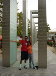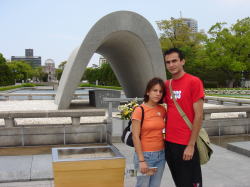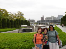 | 5月2日(火曜日) 朝ゆっくりと寝かせておいたら、10時頃まで寝ていた。 エリックとマリカルメンはコンチネンタル航空で働いている。 社員と家族は座席が空いていれば無料でフイト出来るそうである。 日本のゴールデンウイークの初めに日本に来て、最終日に日本を出国すれば、空席が多いという事か? 来る時はファーストクラスしか空いてなかったので、それで来たそうである。 今夜はエリックと母親はホストファミリーの井上さんの家に泊まるらしいので、 夕方4時に井上さんにバトンタッチする事にした。 母親とマリカルメンは広島市も初めてなので、市内に連れて行く事に。 しかし、市内観光といっても、結局原爆資料館と縮景園くらいしか思いつかない。 田中さんは三滝寺を薦めてくれた。雰囲気が一番日本駅であると言っていた。 来広したのであればいの一番に原爆資料館は見学して欲しい。 それが広島に住んでいる人間としての努めであると信じている。 ![]() 最初に全員で原爆ドームを訪れ、次に原爆で亡くなった人の名簿資料が納められている 地下の展示館に入った。ここは私も初めて入る施設であった。 原爆に会った人の証言などが、映像化され、見る人の心につき刺さる。 地下の直径30m位の部屋には中央に水が噴出し、 周囲の壁には原爆が破壊した街の風景が360度表してあった。 モノトーンの風景は良く見ると一枚一枚違うタイルが何十万枚と嵌められて表現してあった。 写真や絵でなく、タイルであったので、何か業火に焼かれ何にも無くした乾燥しきった風景がそこにはあった。 この地下室の地上部には、やはり中央に水が湧き出し、周囲は原爆ドームのレンガであろうか?置いてある。 地下室も地上にも水が湧き出す様にしてあった。 「水!」「水!」と水を求めて本川に身を投じた人々への鎮魂であろうか?・・・・ そのあと原爆資料館に連れていて、エリックは2度見学したというので、 嫁さんとエリックの母親、マリカルメンの3名で入館させる。 スペイン語の案内のテープがあったので、彼女らに持たせる。 ![]() ![]() エリックと私は本通りにお土産を探しに行く。 そのおみやげと言うのは、漢字の書かれているハチマキである。 4年前ホアンとエリックは神風と書かれたハチマキを買って帰った。 エリックはホンジュラスの友人に頼まれたそうである。 本通りの中間あたりにそのお店はあった。 外国人目当てのお店の様で、日本的なものや、おみやげが所狭しと並べてある。 エリックは500円の「闘魂」と書かれているハチマキを選んだ。 外国人は漢字に対して様々な憧れを抱くようである。 何といってもカッコいいそうである。アートを感じる様である。日本的な物の代表のようである。 お土産やのおかみにそんな話をすると、確かに漢字のものは良く売れるそうである。 でも、漢字に対する外国人の感情は初めて聞いたようであった。 彼女達は2時間ばかりゆっくり見学した。 特にマリカルメンはテープの案内以上に、時間を掛けて見入っていた様である。 原爆の実相は知る由も無いが、感じたことをコスタリカ人の友人達に伝えて欲しいものである。 もっともコスタリカは世界で、一番平和を目指している国なのであるが・・・・。 コスタリカは軍隊がないのである!!!。 国の資源も無いので、豊富な自然を見てもらう観光資源を開発しているところである。 若い人たちが様々な平和のアプローチをしてもらいたいと心から願うものである。 遅い昼食をお好み焼とする。エリックは日本食の中で一番好きなのがお好み焼だそうだ。 彼女達も珍しそうに、しかし熱いので、フーフー言いながら食べていた。 「おいしい〜おいしい〜」とは言ってくれたが・・・。 ![]() 寿司バーがアメリカをはじめ世界で拡がった。 どの学生達に聞いても、お好み焼を嫌いという子は居なかった。 海外でお好み焼のチェン店をやれば成功するのではないか?と以前から思っていたのだが・・・。 山崎の周さんにその事を話したら、ロサンジェルスのリトルトーキョーである人がお好み焼を始めたのだが、 2ヶ月で潰れたそうである。価格は9ドルであったそうだ。 次男に「アメリカの昼食代はいくら位だ?」と聞いたら「5ドルまで!!」という答えだった。 1000円のお好み焼は日本でもちょっと高すぎる。 価格設定だけが、間違って潰れてしまったのか、良く分からんが残念である。 味で言えば寿司よりももっと庶民的で、拡がる可能性はあると思うのだが・・・・。 4時に井上さんにエリック親子を引き渡し、マリカルメンとスーパーに買い物に行く。 マリカルメンはお箸と海苔巻きのスノコを買っていた。 コスタリカにまき寿司の食材はあるのかな? 夕食後、嫁さんはマリカルメンとスペイン語で彼女の身上調査をしたいた。 マリカルメンはゆっくりと喋ってくれるので、非常に分かりやすいらしい。 夜10時過ぎて、タイのぱっちゃんがMSNで呼びかけてきた。 マリカルメンを紹介してマイクを渡すと、二人