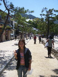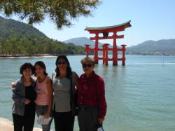 | 5月3日(水曜日) 朝9時半にエリック達を引き取って岩国と宮島に行く事にした。 高速道路で行こうと思ったが、事故などで渋滞しているようである。 仕方ないので地道を走る。 宮島口の駐車場は大混雑と読んで、手前のフジグランの駐車場に停めて電車で行く事に。 フジグランでは早速マリカルメンはゆかたに目を奪われた。 というか、その金額に魅せられた。 ゆかた、帯、きんちゃく、下駄一式で5,000円である。 すぐ買う気になって。帯や巾着、下駄のコーディネーションに夢中である。 一時間ばかりかかってしまった。 電車の2駅で宮島口に着く。駐車場に向かって車が長蛇の列であったので、1人ほくそ笑む。 フェリーはJRのほうにする。何故かというと、エリック達はJRの日本周遊券を買って来ていた。 アメリカの友人に買ってもらって送ってもらったらしい。 この周遊券は外国人しか使用出来ない。一週間の有効期限で日本全国JRであれば乗り放題である。 新幹線はひかりまで(のぞみは別途料金)である。 金額は何と2万円である。JRのみで一週間も旅行すると、めっちゃ安い事になる。 日本人も欲しいところであるが、この周遊券はパスポート持参が条件であった。 そんな訳で片道170円のフェリーも周遊券を使用する。 ![]() 厳島神社本殿で、赤ちゃんのお参りの儀式をやっていたので、15分間くらいじっくり見せてやった。 とても興味深そうに見入って、盛んに写真を撮っていた。 国宝の能舞台で、私達が謡った事を嫁さんにスペイン語で伝えてもらったが、国宝や能が伝わりにくかった。 千畳閣で、石の土台に乗っている柱の根元を説明。石の凹凸に沿って柱を加工して建っている。 土台の石を平たく削らないで自然石のまま、その通りに柱の根元を加工してあるのである。 これが宮大工の心意気と技だと説明してやったら、エリックは盛んに感心していた。 ![]() 帰途みやげ物屋に寄る。以前パッチャンが日本人形10体買ったところだ。 この店は千円均一商品のお店だ。日本的な物、ジュエリー小物、服など、雑多なものが置いてある。 3人にプレゼントするので、好きなもの一個ずつ選んでもらった。 エリックは獅子脅しの置物(水が循環して、カタカタ鳴っている)、 母親は日本人形、マリカルメンは下駄を買った。 3時頃になってしまった、昼食を食べにお店に入っている暇はないので、 フジグランで其々好きなお弁当を買ってもらった。 大野ICから高速道路にのり、一気に錦帯橋に行き、河川敷でお弁当を食べる。 ピクニック気分で皆も喜んでくれた。 公園では皐はちょっと早く葉のほうがおおかったが、芝桜やあやめの群生はきれいであった。 ![]() ![]() |